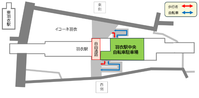 (注意)南海羽衣駅自由通路西側、東側から入庫することができます。