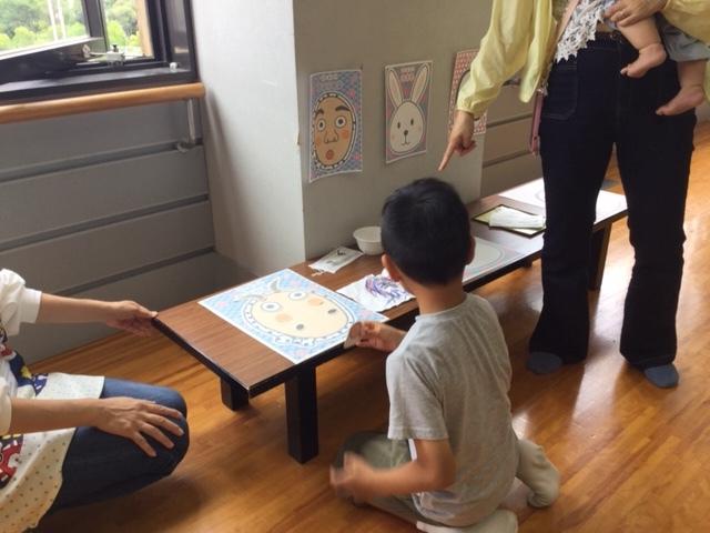 お子さんと一緒に絵具で模様を描き、オリジナルのうちわを作りました。